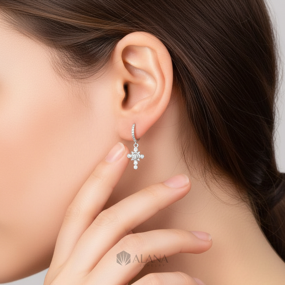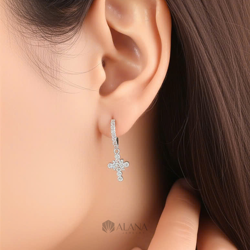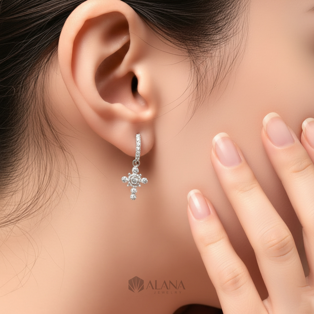 Bông Tai Thánh Giá Thiết Kế Đính Đá Moissanite – EWS018
