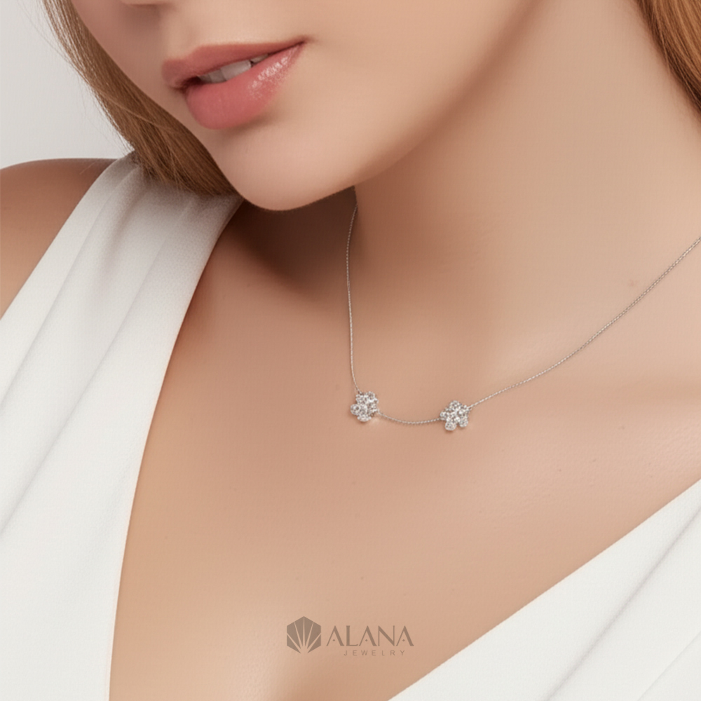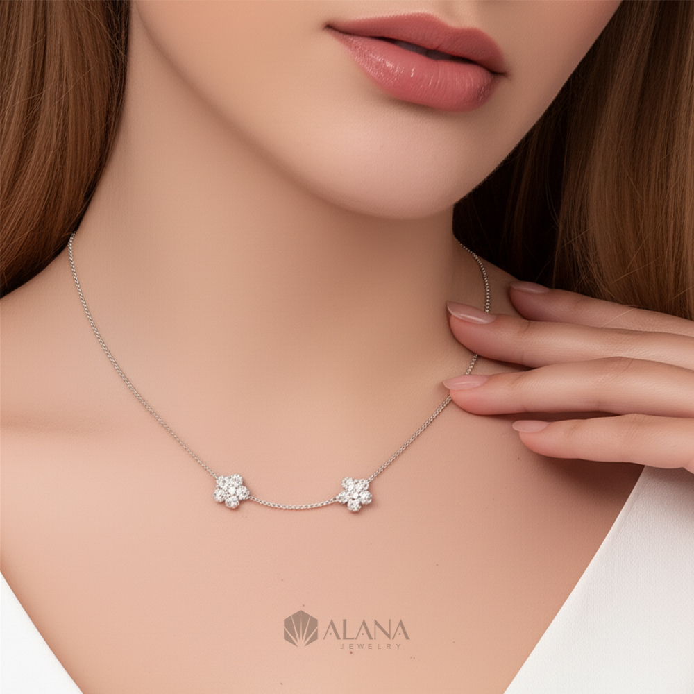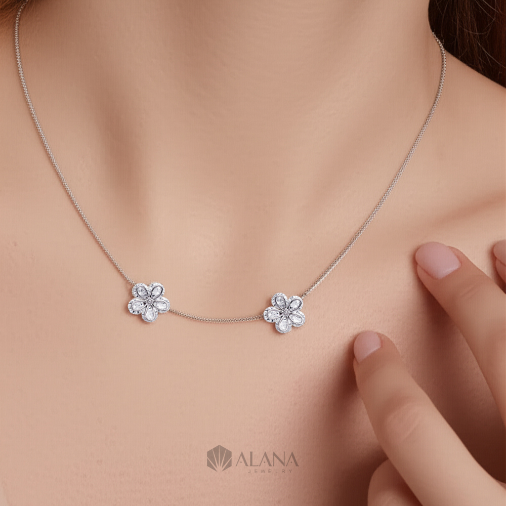 Dây Chuyền Mix Mặt Hoa Đôi Đính CZ – NLWS003