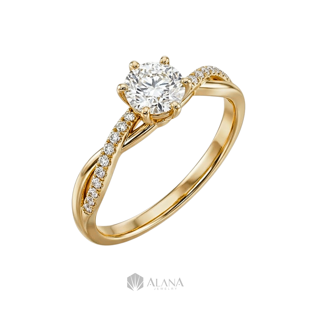 Nhẫn Minimal Luxe Vàng Vàng Đai Xoắn Đính đá Moissanite – RG10050058