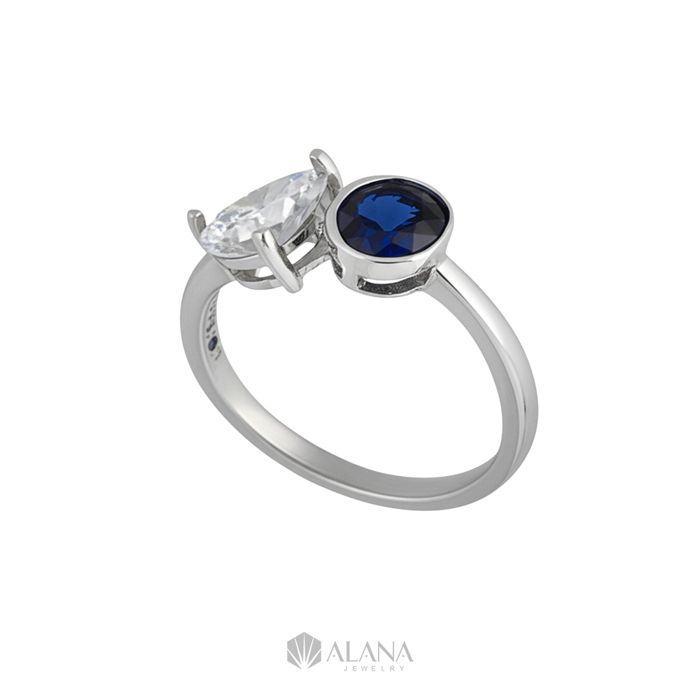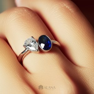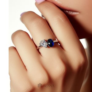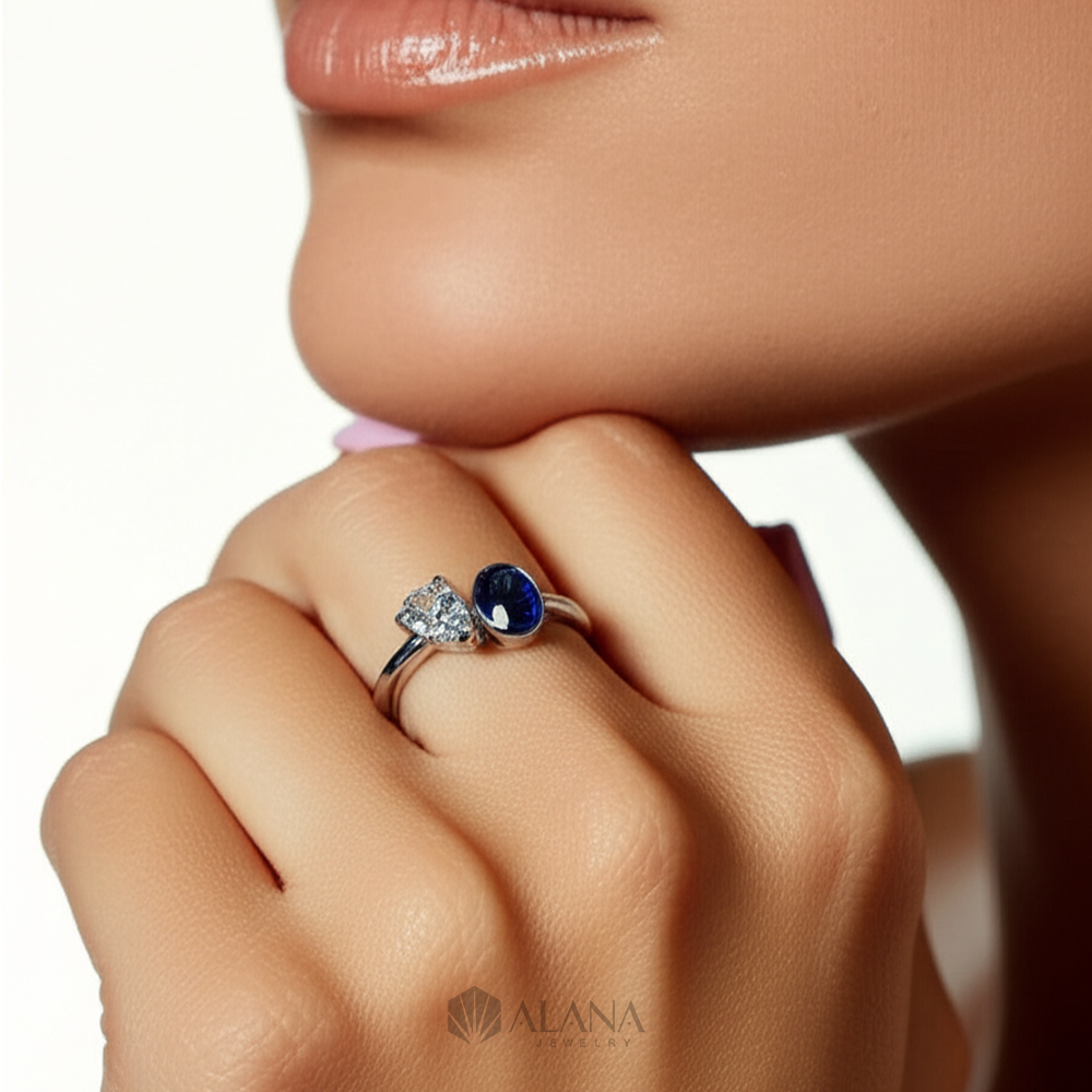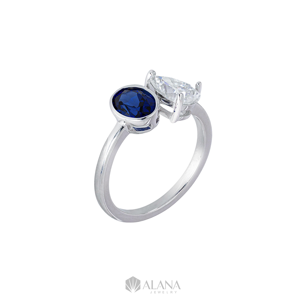 Nhẫn Oval Blue Grey + Giọt Nước Moissanite – RWS070006